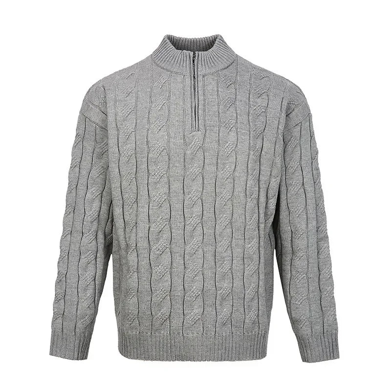 Ce pull élégant pour homme à col montant et demi-fermeture éclair dégage une classe intemporelle et un style raffiné. Le motif torsadé soigné apporte une allure luxueuse et classique, tandis que la matière douce et confortable assure un excellent confort au porté. Le col montant offre une chaleur supplémentaire et peut être porté ouvert ou fermé pour un look polyvalent. Grâce à sa finition de haute qualité et à ses bordures ajustées, le pull conserve parfaitement sa forme et sa coupe. Une pièce polyvalente qui s’adapte aussi bien à une tenue décontractée qu’à un style plus habillé.